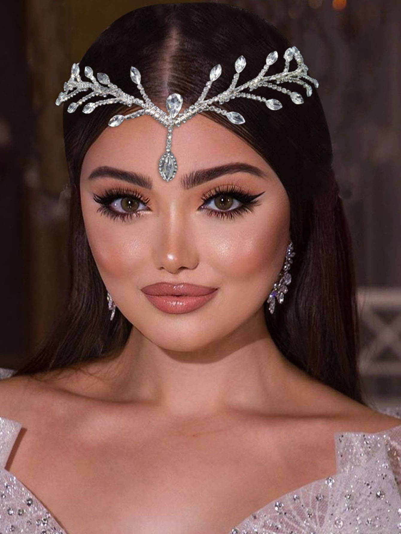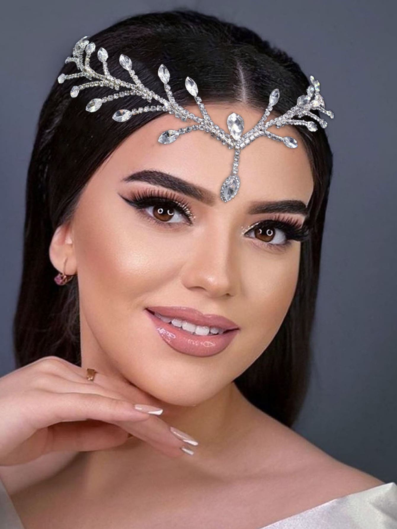 1pc Women's Silver Glass Rhinestone Bridal Headpiece Handmade Pendant Head Chain Hairband For Engagement, Wedding, Birthday, Party, Banquet Elegant Royal Tiaras