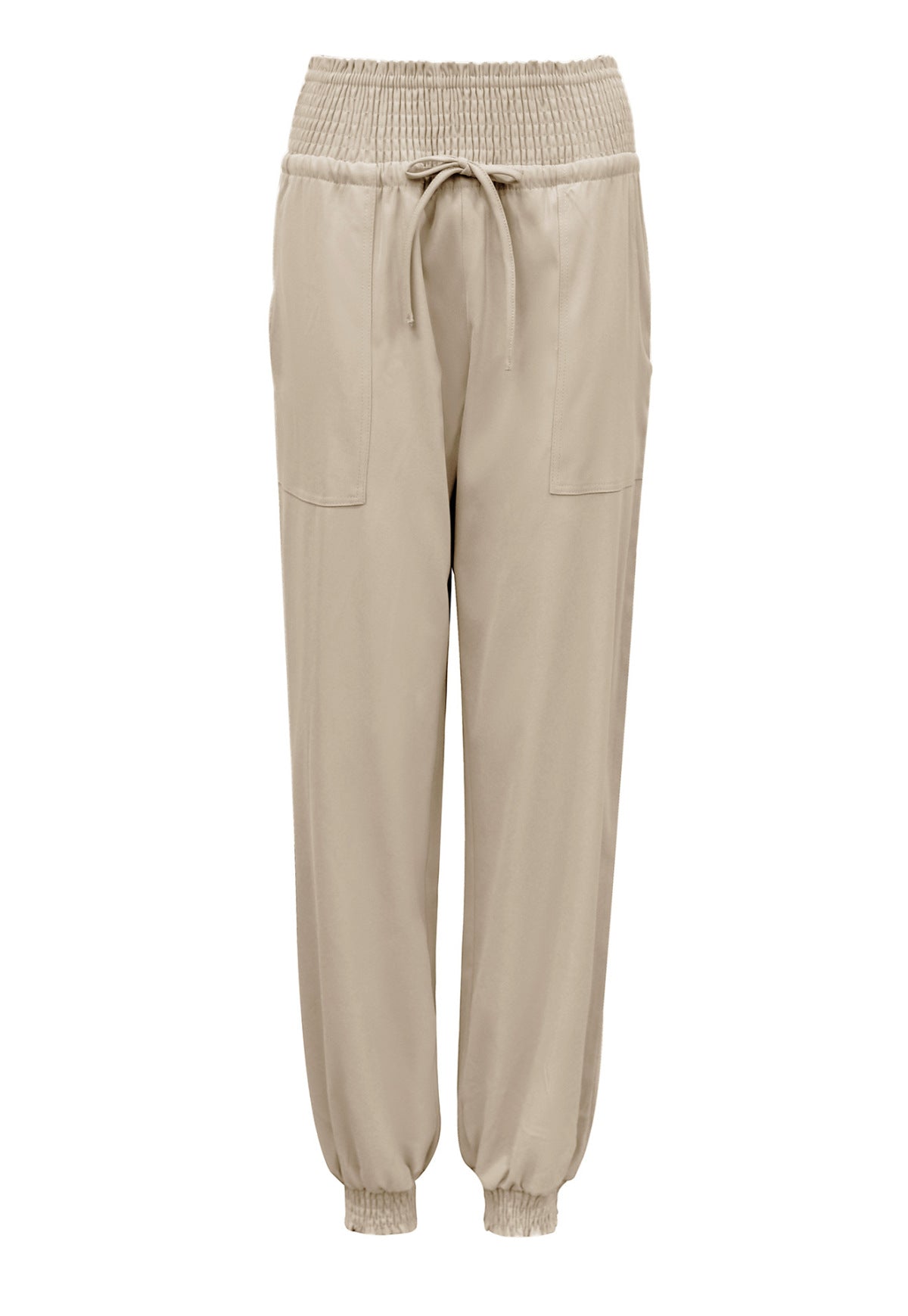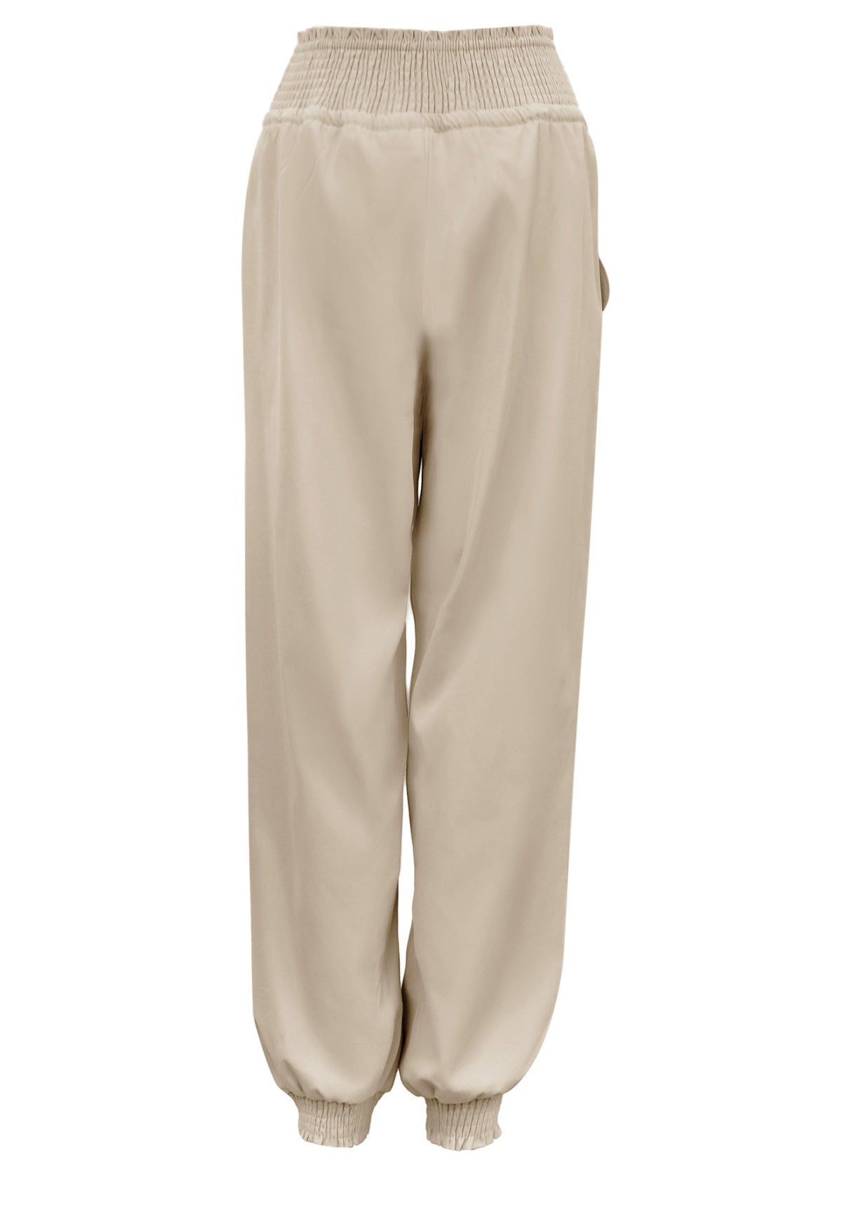Increase quantity for Casual Shirred Elastic High Waist Tie With Pocket Pants