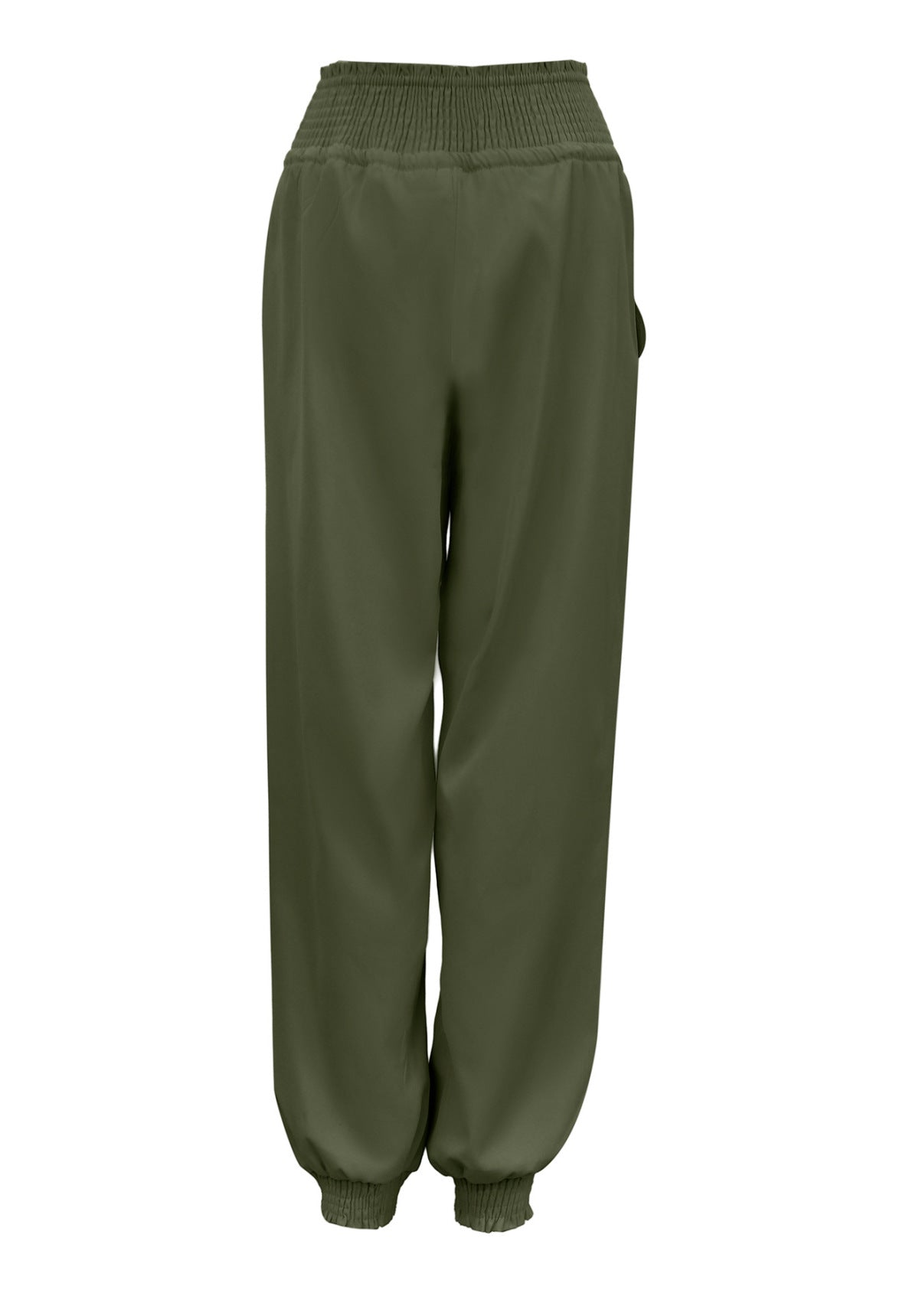 Decrease quantity for Casual Shirred Elastic High Waist Tie With Pocket Pants