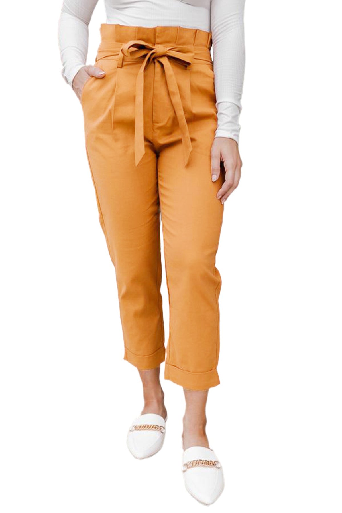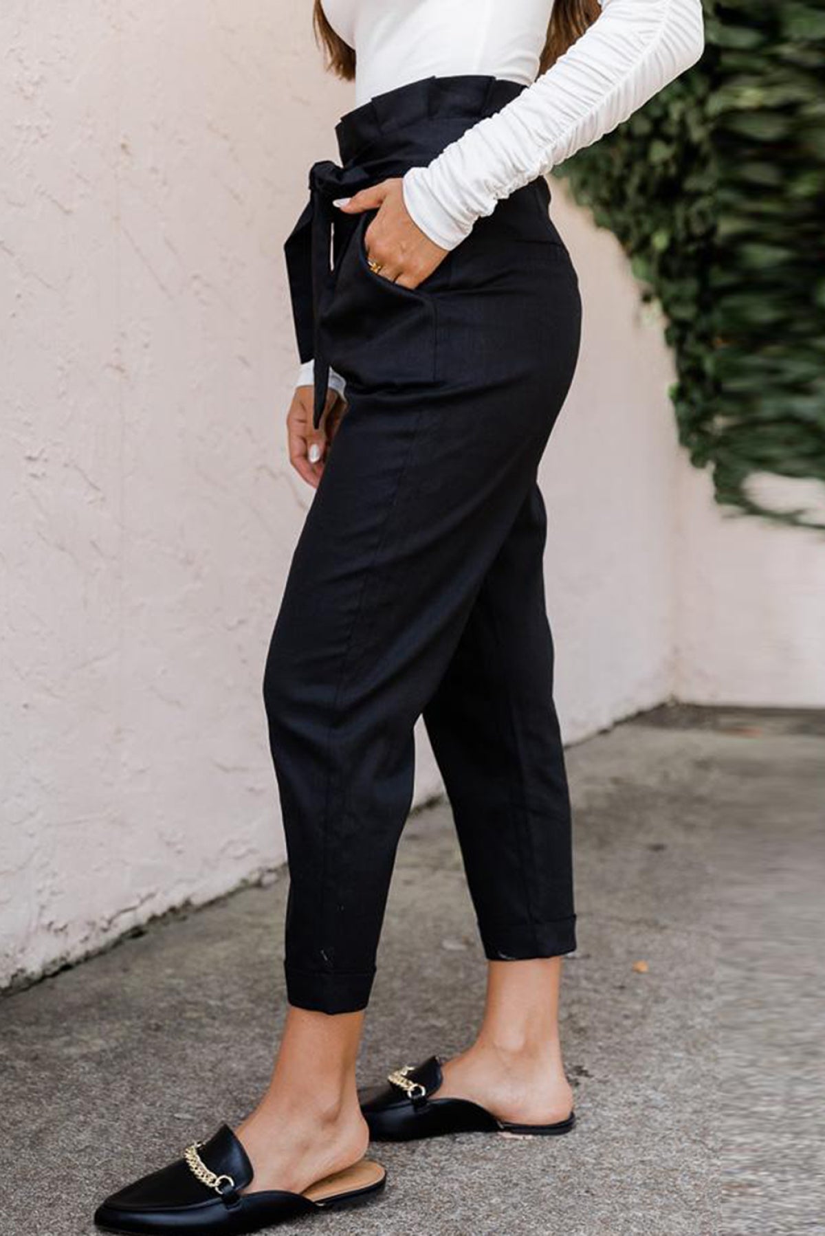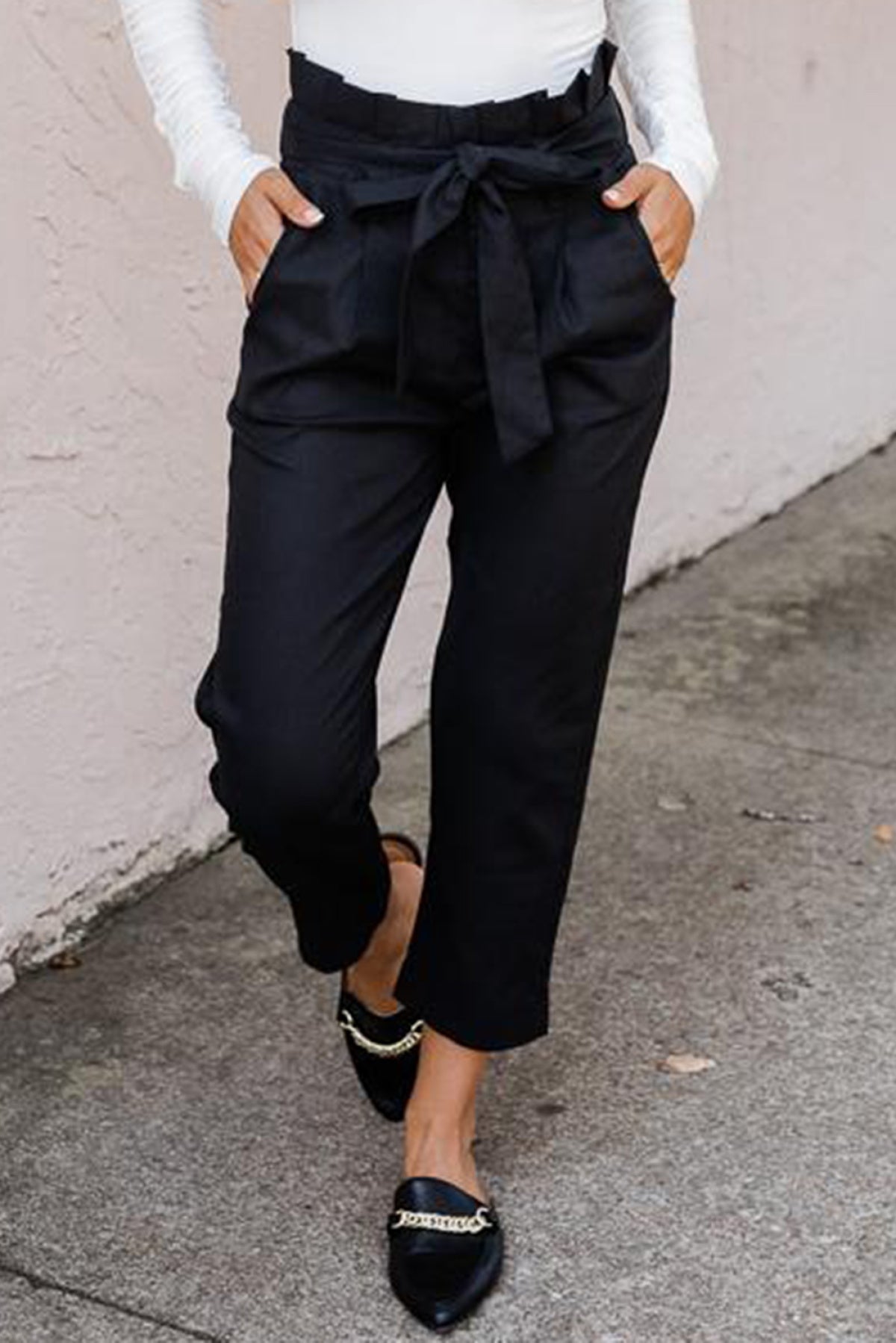 Increase quantity for Paperbag Belt High Waist Straight Leg Pants