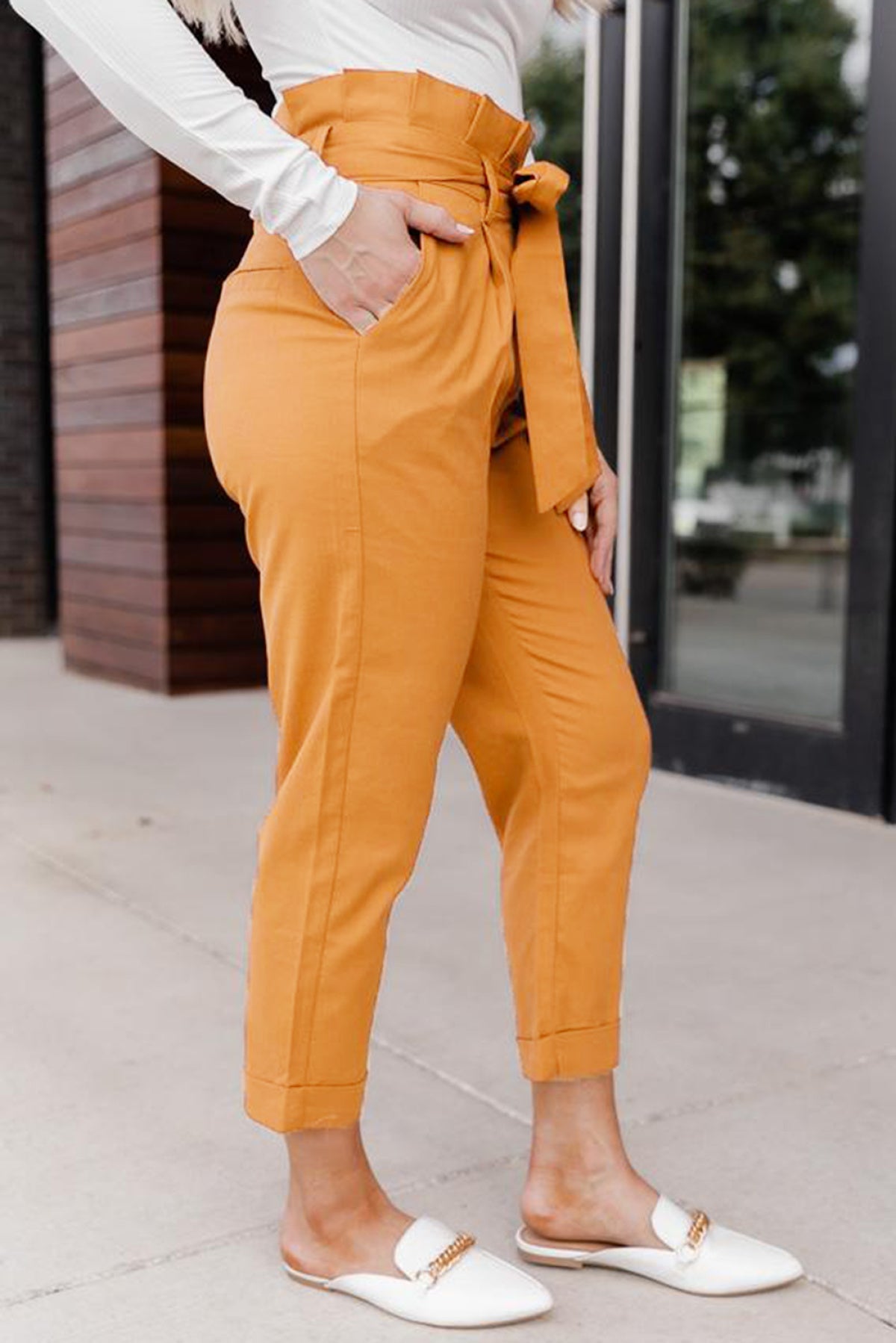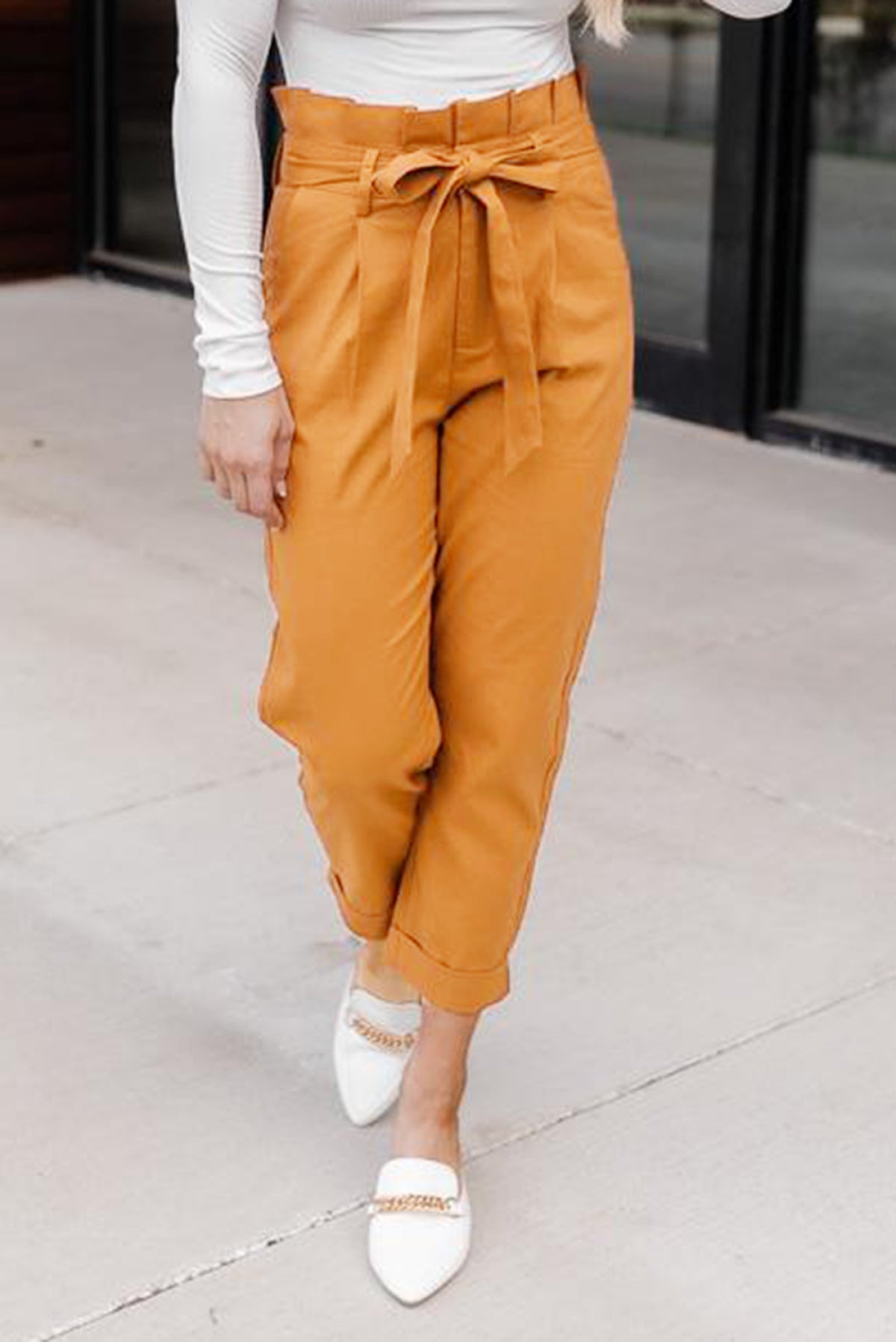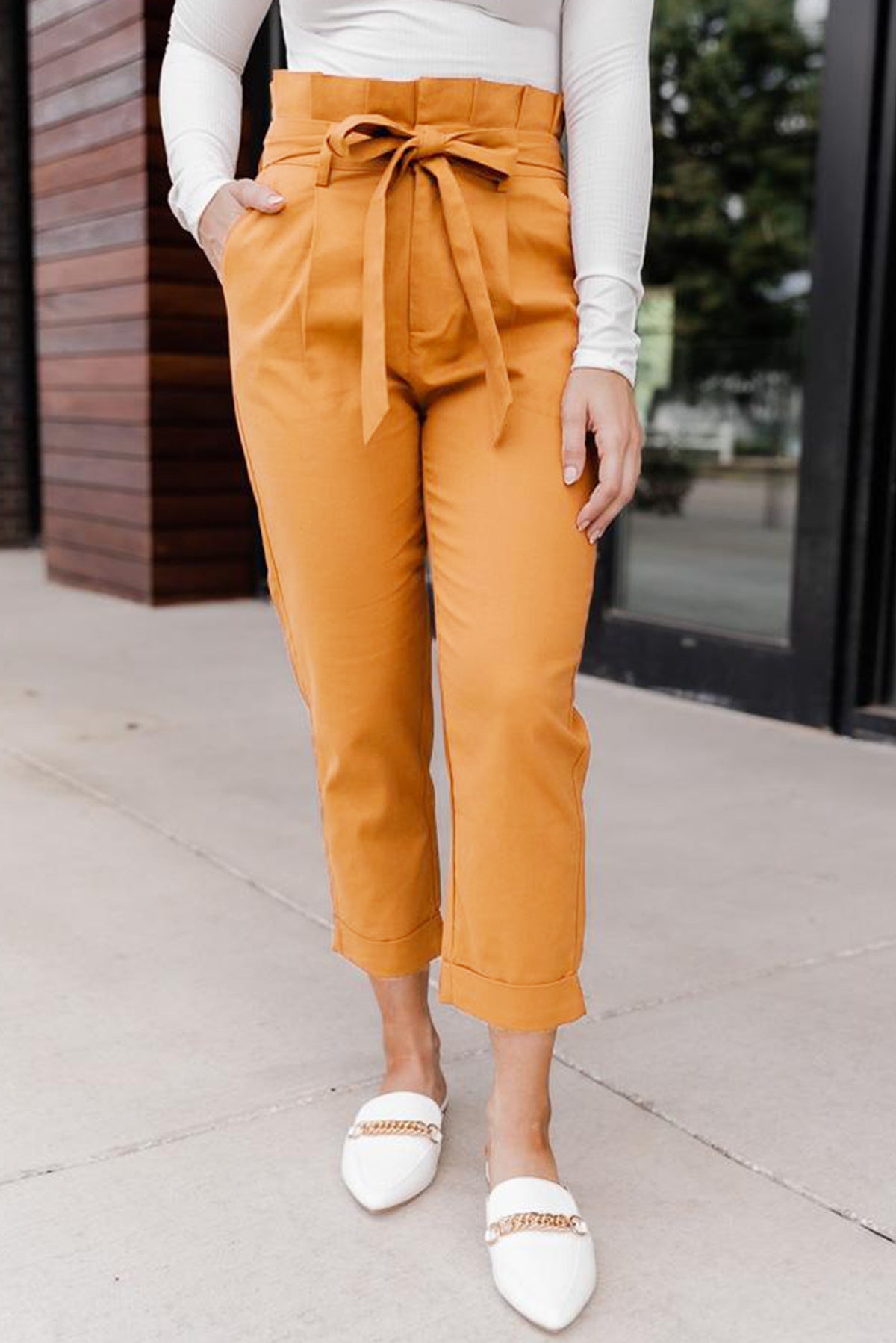 Increase quantity for Paperbag Belt High Waist Straight Leg Pants